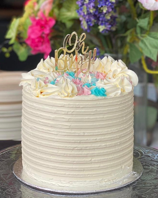 Onze gender reveal taarten maken van elk moment een magische onthulling! Met een kleurrijke binnenkant in roze of blauw en een prachtig afgewerkte buitenkant, zorgen ze voor spanning en vreugde.