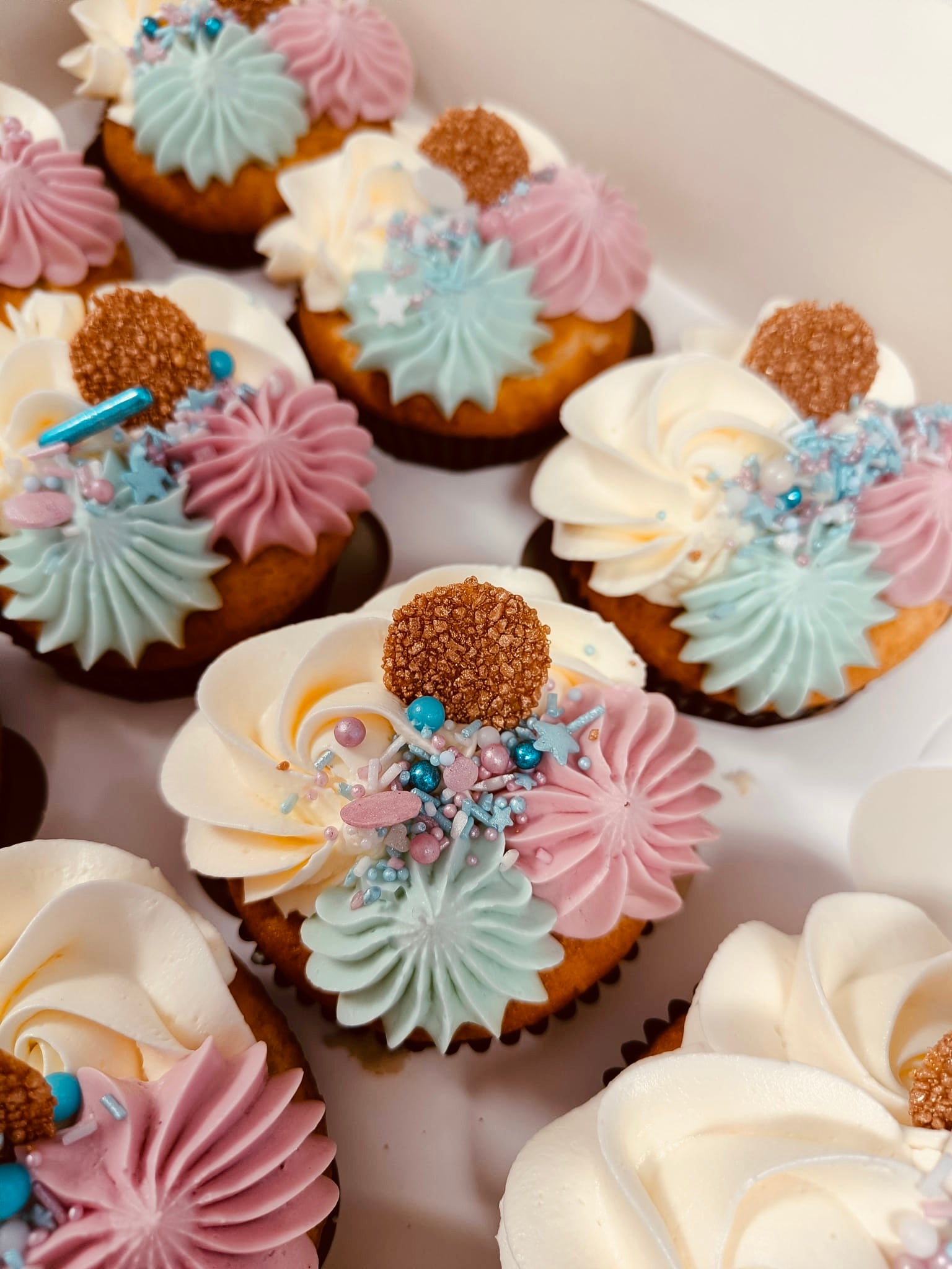 Onze gender reveal taarten en cupcakes maken elk speciaal moment nog magischer! Vier de komst van je kleintje met een prachtige taart of schattige cupcakes, gevuld met een verrassende roze of blauwe kern. Perfect voor een feestelijke onthulling of een zoete traktatie bij een babyshower. Gemaakt met liefde, smaakvol en onvergetelijk! 💙💗